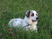 Beschreibung: Familiäre Pyrenäenberghundzuchtstätte "des yeux sineres" aus Trossingen mit der Zuchthündin INDRA aus dem Hause Mordhorst.